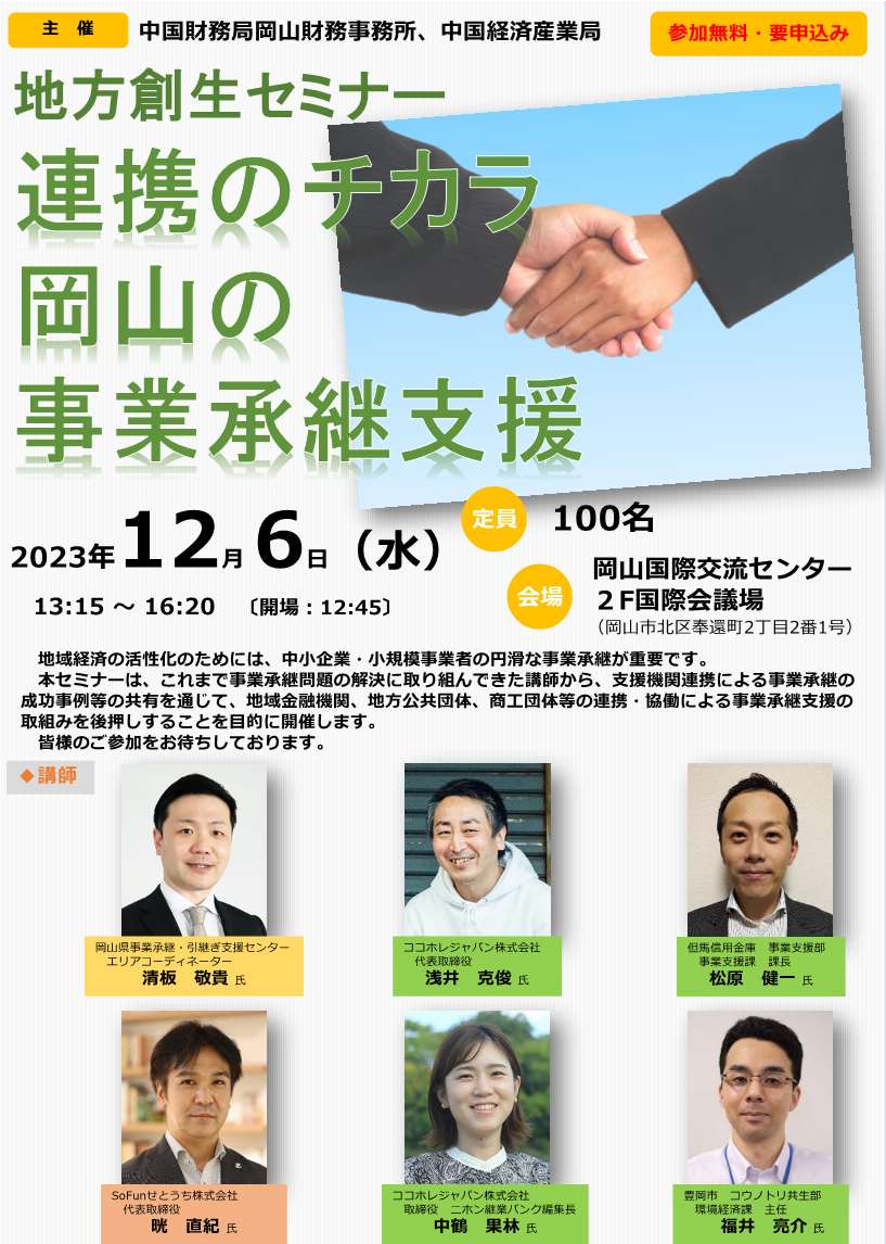 地方創生セミナー~連携のチカラ 岡山の事業承継支援~開催のご案内(12/6開催)