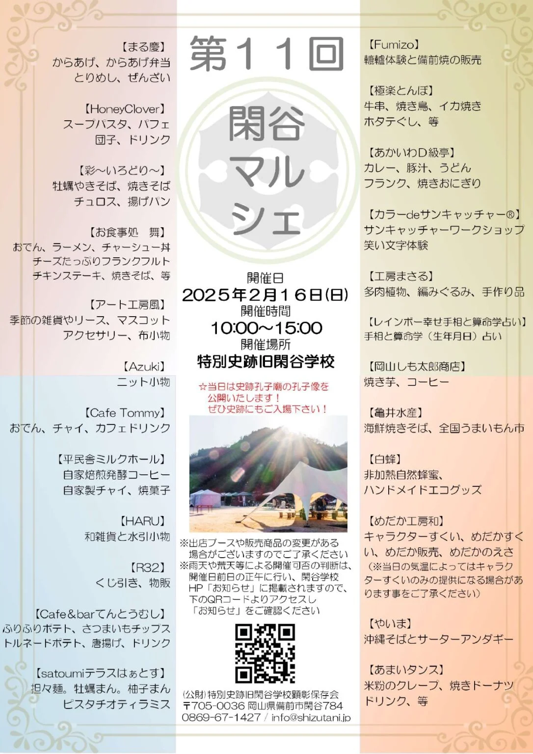 東備西播地域を中心に、多くの人やものが交流することを目指す「閑谷マルシェ」の第11回目を令和7年2月16日に開催します!