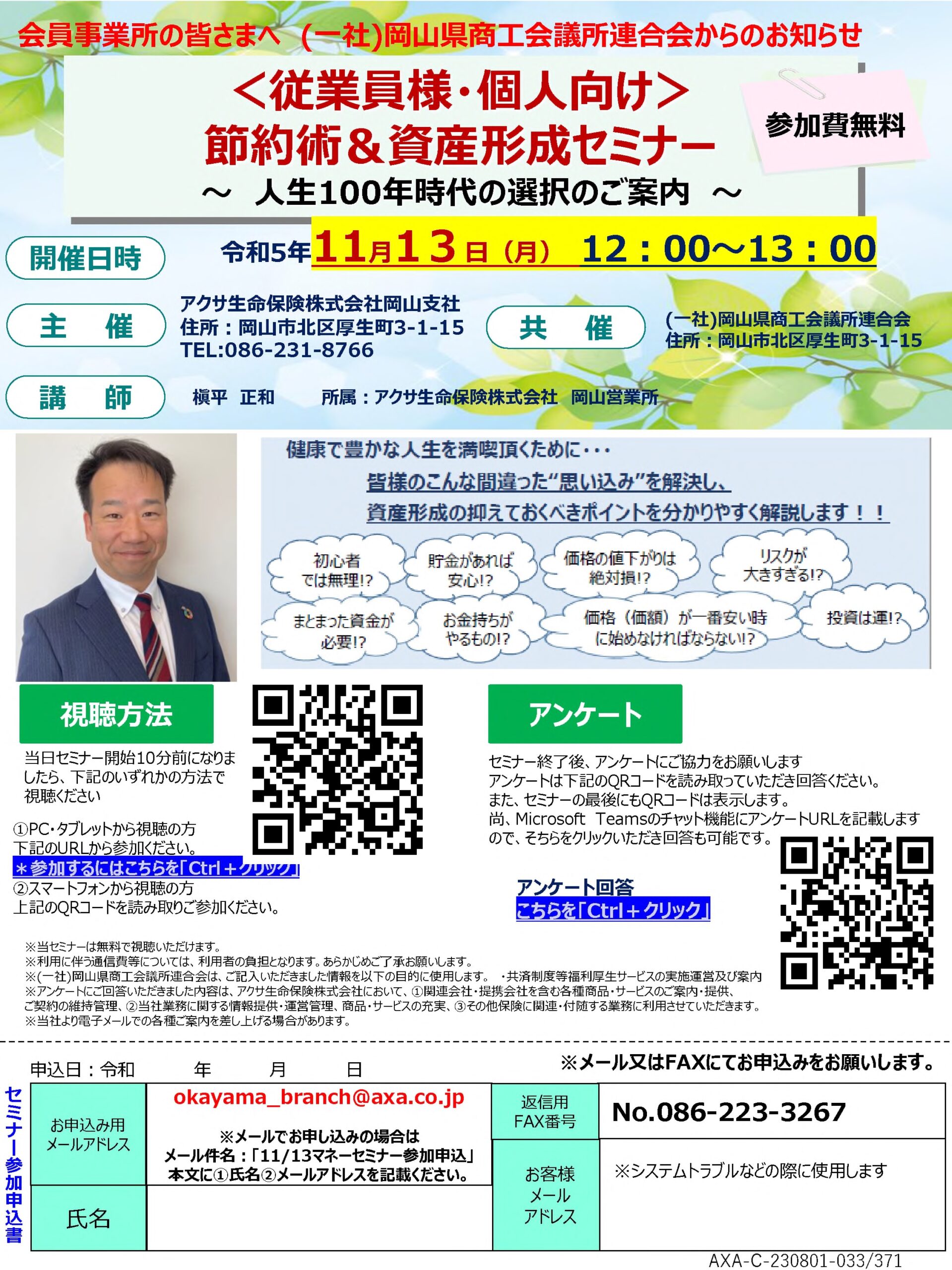アクサ生命保険(株)岡山支社が(一社)岡山県商工会議所と共催で