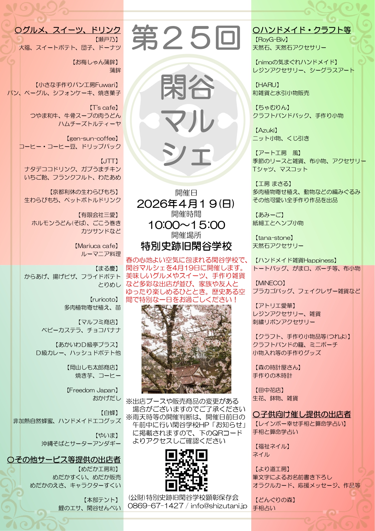 4月19日に第25回閑谷マルシェが開催されます!