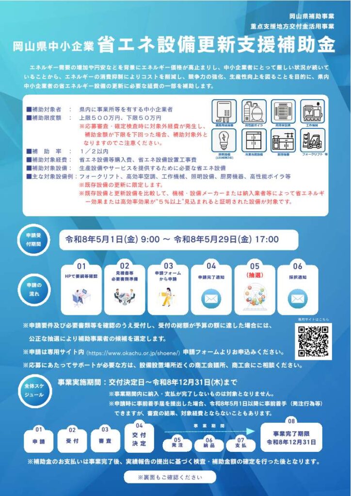 「岡山県中小企業省エネ設備更新支援補助金」(5/1~29)のご案内